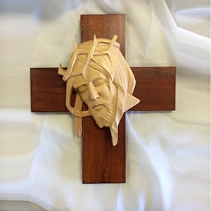 Wooden Cross with a head bust of Jesus.