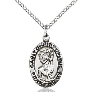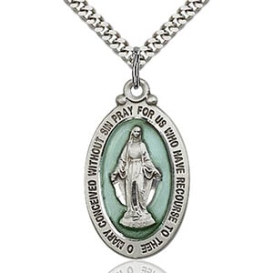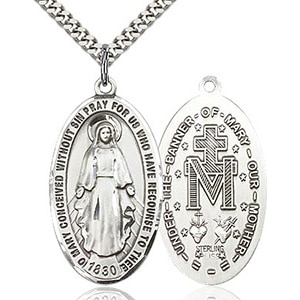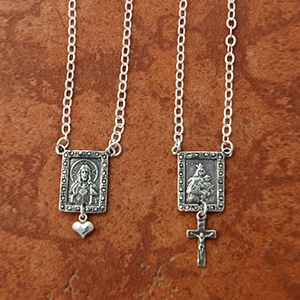 Sterling silver scapular necklace, 18″ chain, 7/16″ medals