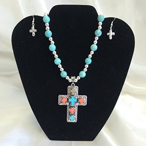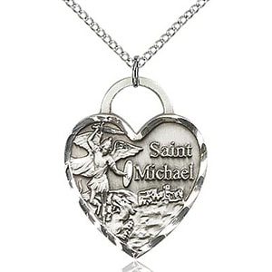 Sterling silver scapular necklace with heart and cross, 25″ chain, 11/16″ medals