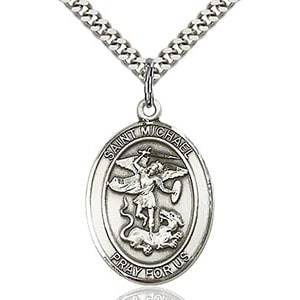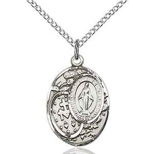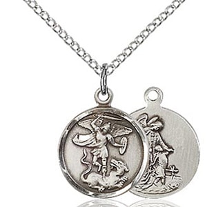 Sterling silver scapular necklace, 18″ chain, 7/16″ medals