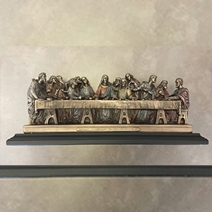 A cold-cast bronze sculpture of the Last Supper. The Holy Journey series is a tribute to Christ and Christian Faith.