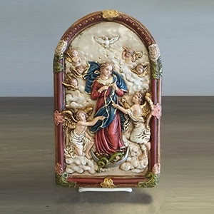 A 12″ statue of the Lady of Knots, a special edition version from the Luciana Collection. Hand painted and made in Italy.