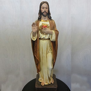 A 22.5″ hand-painted statue of the Sacred Heart of Jesus molded in resin.